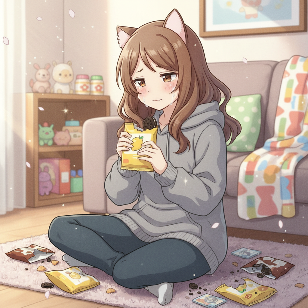 もっと食べな…ほら私のアルフォートのファミリーパックあげるよ元気出して
